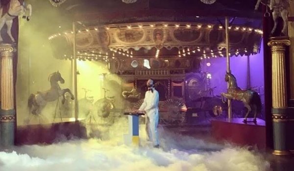 Sur scène, il se tient seul, le corps en croix entre ses synthés-sampleurs comme deux luths constellés.